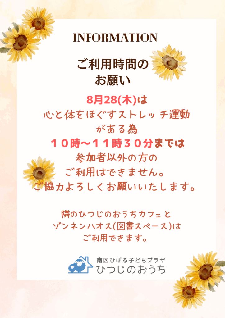 8/28(木)の利用時間のお願い